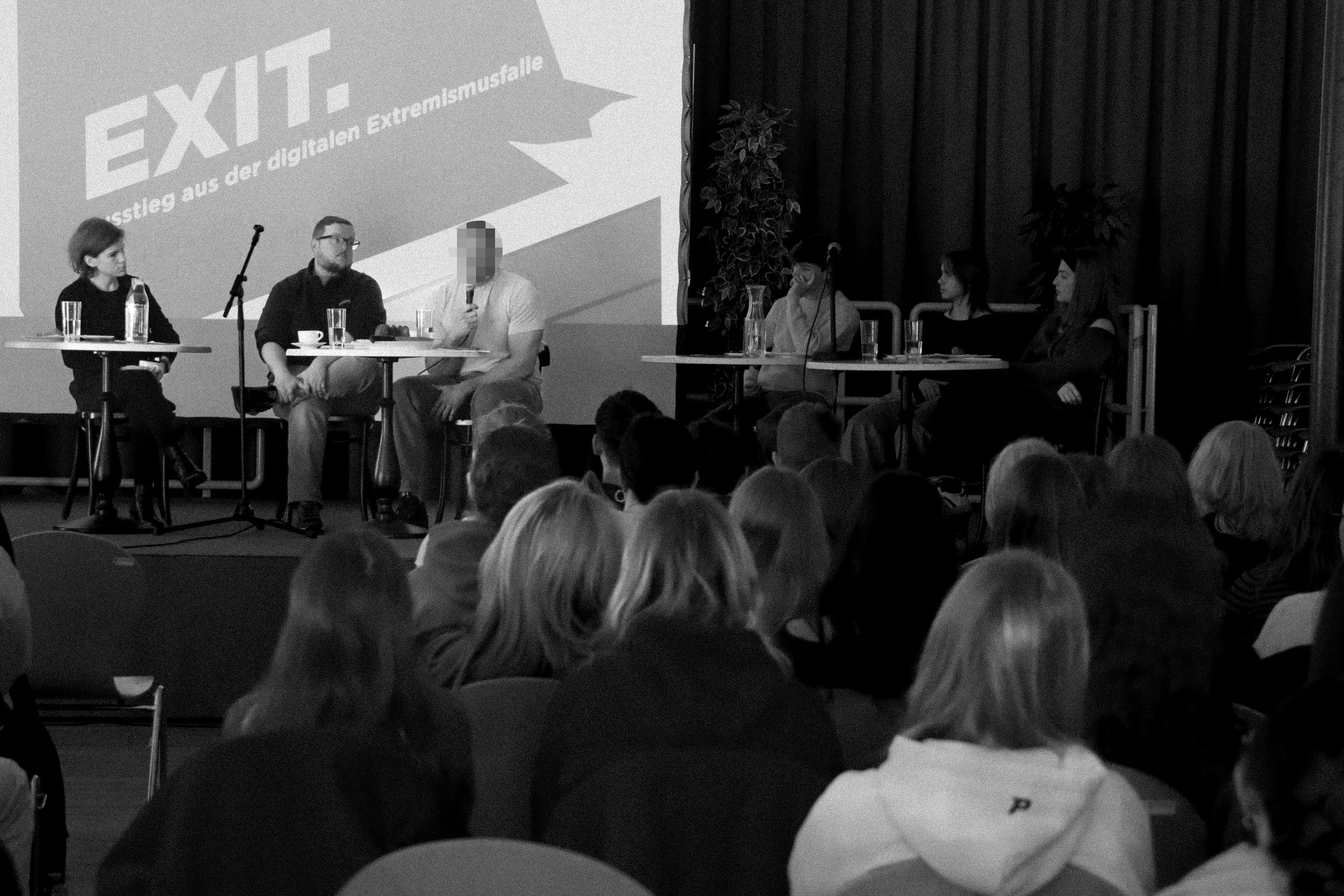 Besonders eindrucksvoll war der persönliche Bericht von Bernd, der offen über seinen Weg in die Radikalisierung und die schwerwiegenden Folgen für sein Leben sprach. Um seine Anonymität zu schützen, wurden sämtliche Fotos von ihm verpixelt. Seine Erzählung löste spürbare Betroffenheit und Nachdenklichkeit bei den Schüler*innen aus.