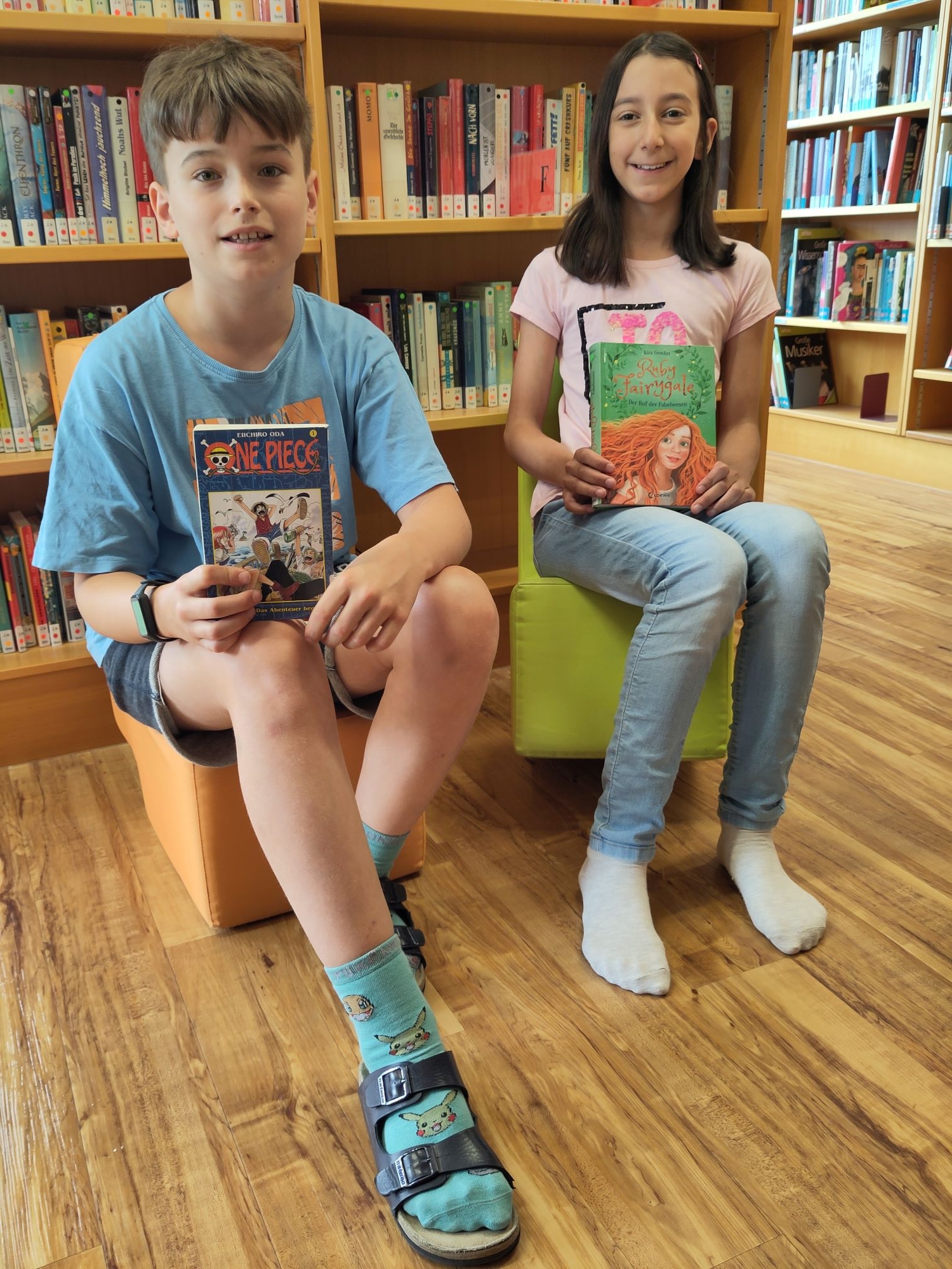 Meryem wird zur Nachwuchsbibliothekarin und Adam zum fleißigsten Leser des Schuljahres 202324 gekürt.