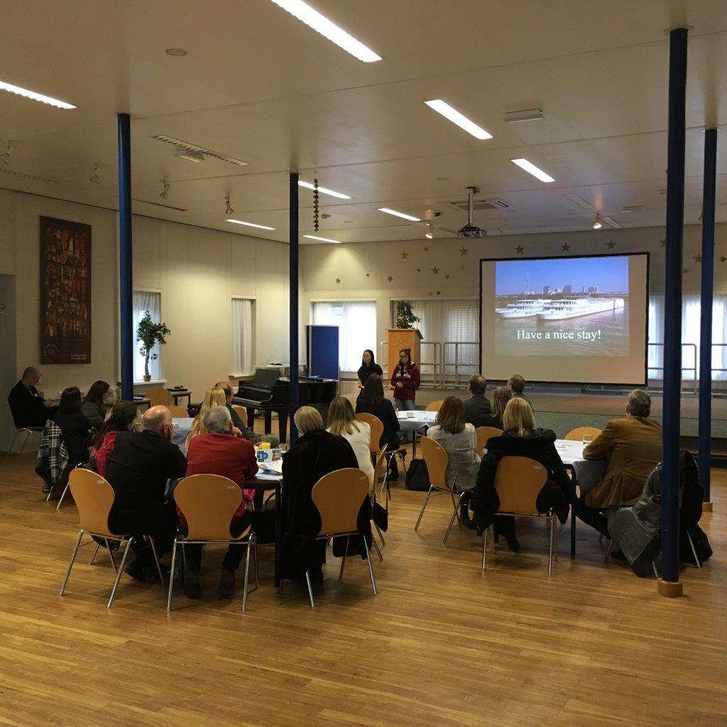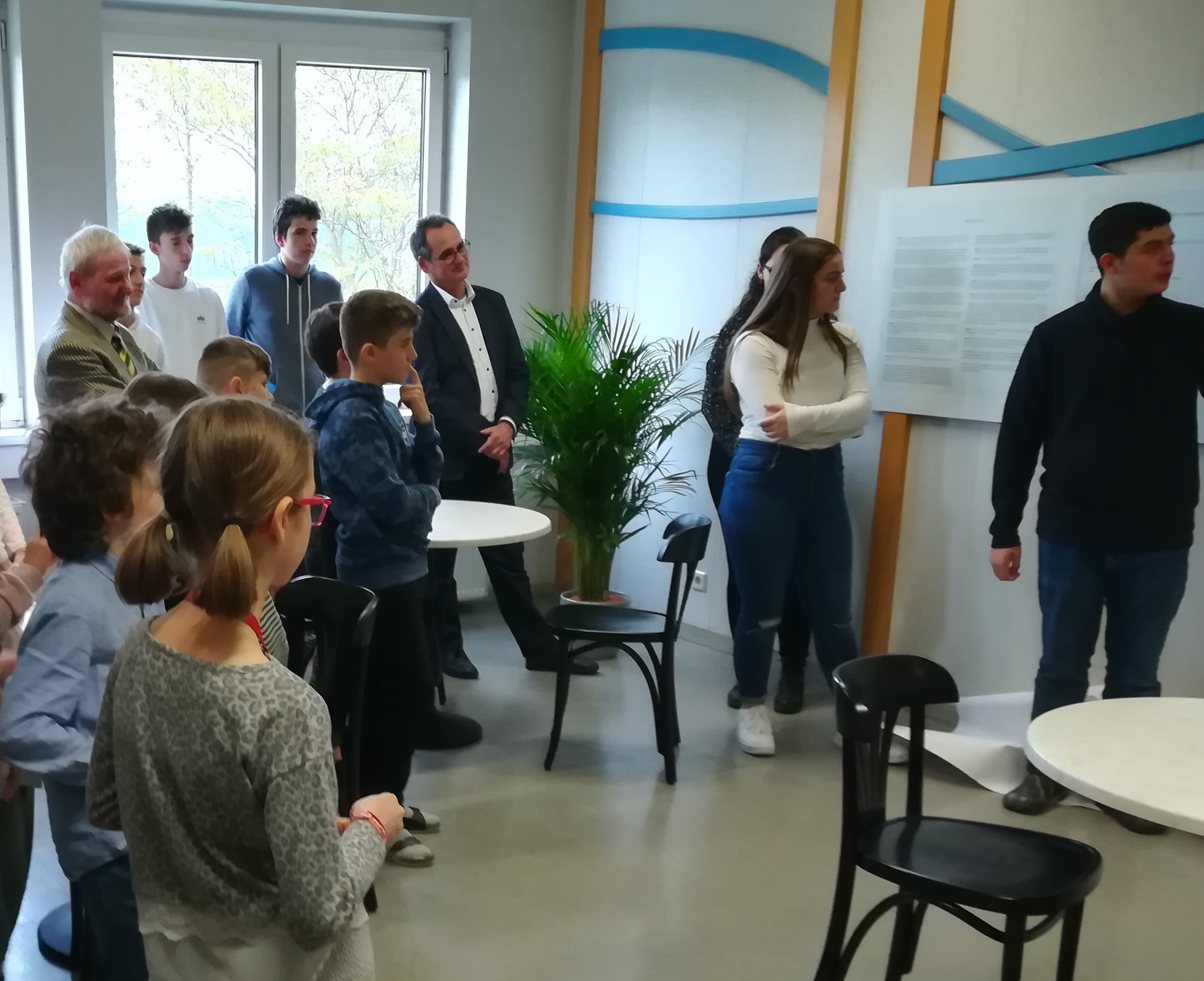 Anschließend trafen wir wieder in den Mehrzwecksaal ein und direkt im Anschluss erzählten uns die Franzosen, in Form eines Vortrags, etwas über den Namensträger ihrer Schule, Louis Pasteur, auf Französisch. Da ein paar Leute der 5a auch einen Vortrag über unsere Namenträgerin Bertha von Suttner vorbereitet hatten, trugen sie diesen den Franzosen auch vor.